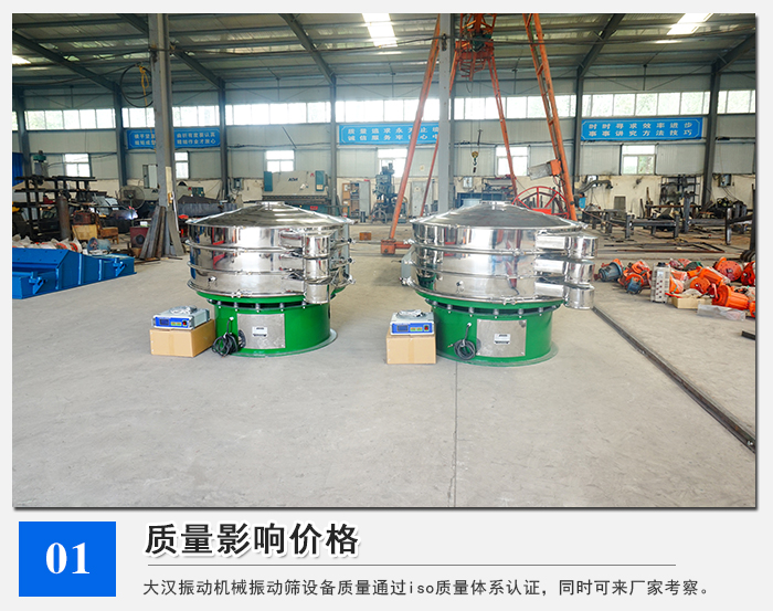 做篩分設(shè)備的廠家有很多,但是也有很多皮包公司,沒有生產(chǎn)能力,還有一部分廠家廠家為了盈利,以次充好,會(huì)在選材、生產(chǎn)環(huán)節(jié)偷工減料,看著當(dāng)時(shí)買的可便宜,但是沒想過(guò)售后問(wèn)題,后續(xù)會(huì)因?yàn)樵O(shè)備質(zhì)量問(wèn)題問(wèn)產(chǎn)生大量費(fèi)用。大漢超聲波振動(dòng)篩質(zhì)量以與其為了一時(shí)的低價(jià)誘惑造成在設(shè)備質(zhì)量方面的疏忽是必須要避免的。大漢振動(dòng)機(jī)械振動(dòng)篩設(shè)備質(zhì)量是通過(guò)iso質(zhì)量體系認(rèn)證的,同時(shí)您也可以來(lái)大漢振動(dòng)機(jī)械考察,看一下我們的生產(chǎn)能力。好產(chǎn)品不怕比價(jià)格。