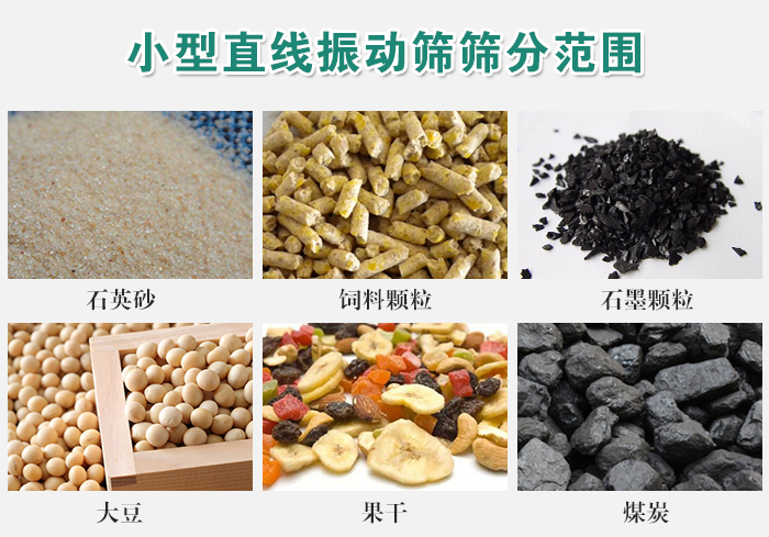 適用于粒度在0.074—5mm,含水量小于7%,無(wú)粘性的各種干式粉狀或顆粒狀物料的篩分。大給料粒度不大于10mm.