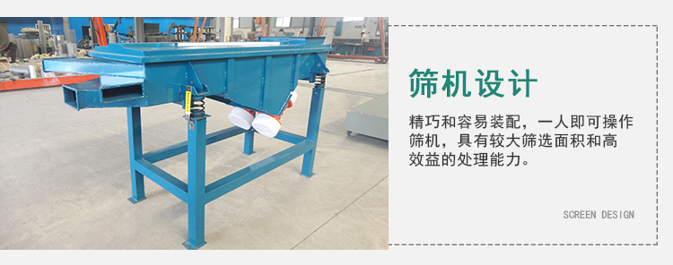 1、篩機(jī)設(shè)計(jì),精巧和容易裝配,一人即可操作篩機(jī)。