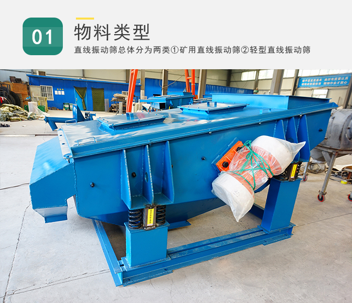 如果用于采礦篩分就選大型礦用直線振動(dòng)篩,如果是篩分一些小型物料就采用輕型直線振動(dòng)篩篩分